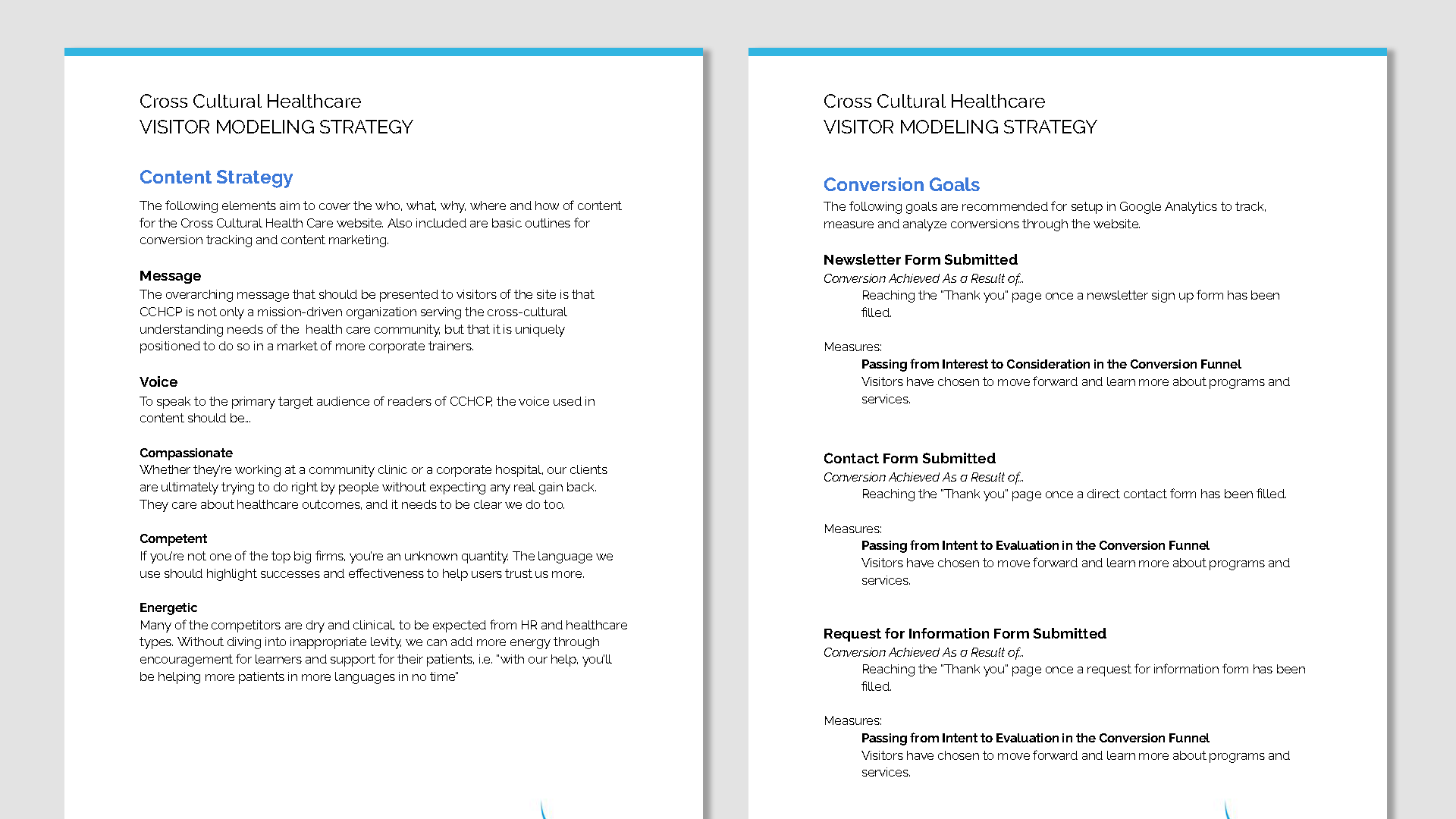 The Cross Cultural Health Care Program provides training, interpreters, and advocacy for indigenous and ethnic minorities in communities across the United States. They were working on a website redesign, aimed at improving site metrics like engaged sessions, conversions, and overall time on site, along with intangibles like improving the visual quality and branding of the site. I was part of a developer team as the principal UX strategist and copywriter.
