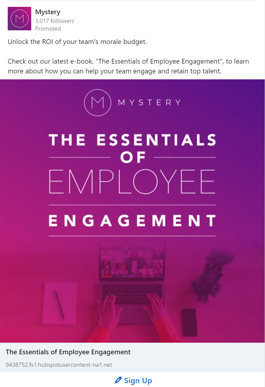 Glue (formerly known as Mystery) is an HR tech startup that helps corporate event planners find and facilitate fun team building events for their distributed workforces—the twist is they don’t know the activity until the moment the event happens. Having had steady growth so far, they needed new lead magnet materials that would both grow their existing “Mystery” events, and teased their new Glue product which uses these events to quantify and grow employee retention and happiness.