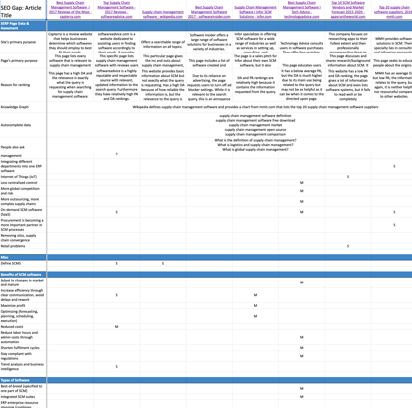 As a senior copywriter working with Smartsheet directly, I selected potential topics provided by an SEO specialist, and performed a gap analysis on them. This involved reading through all the articles that ranked for the target keyword, cataloging all the types of content, and finding things that nobody covered that we could take advantage of. I used HARO (Help A Reporter Out) to source and interview subject matter experts to get quotes and information nobody else on the SERP (search engine results page) had. From there, I built an outline and draft for long form content, around 4000+ words at least. I also sketched up designs for original imagery that would bolster the article, and briefed in-house designers on them. Finally, I uploaded all the content to our Drupal CMS and scheduled for publishing. I applied the same process to other internal copy projects, such as ebooks and emails.